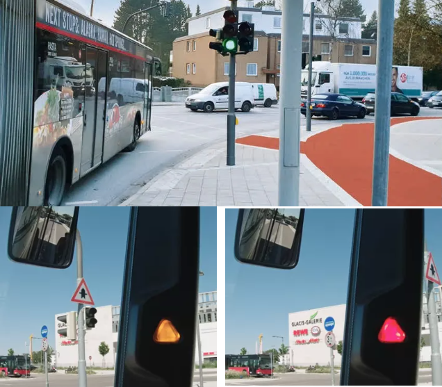 漢堡市HHVA使用FLIR的Thermicam2 V2X讓救護(hù)車、公交車等特殊車輛實(shí)現(xiàn)了實(shí)時(shí)信息交互,將特殊車輛安裝了OBU(車載單元),這樣等它們駛近路口時(shí),路側(cè)的FLIR Thermicam2 V2X通過無線通訊獲取到車輛即將到達(dá)停車線的信息,隨機(jī)將綠燈請求信號發(fā)送給交通信號機(jī),實(shí)現(xiàn)特殊車輛信號優(yōu)先。