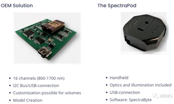 Maurangelo Petruzzella表示:“除了上述應(yīng)用,該光譜傳感器還將用于個(gè)性化醫(yī)療保健、精準(zhǔn)農(nóng)業(yè)(例如監(jiān)測(cè)水果和蔬菜成熟度)、工業(yè)過(guò)程控制和芯片實(shí)驗(yàn)室(lab-on-chip)測(cè)試。我們現(xiàn)在有基于該項(xiàng)技術(shù)的完整開(kāi)發(fā)套件——SpectraPod,很多公司和研究團(tuán)隊(duì)利用它來(lái)構(gòu)建應(yīng)用程序。最棒的是,該傳感器未來(lái)甚至可以在智能手機(jī)中普及,這意味著人們可以在家里用它來(lái)監(jiān)測(cè)食物質(zhì)量或健康狀況?!?/span>