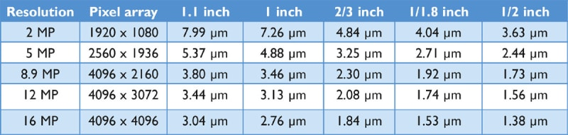 圖2|最大像素尺寸,以適應(yīng)特定光學(xué)格式的特定分辨率