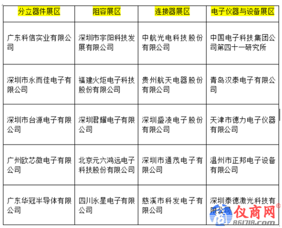 近年來,中央財政大力支持制造業(yè)強國建設,在國家政策的支持以及自身的努力下,一批本土企業(yè)憑借具有核心競爭力的技術實力,逐漸獲得了市場的認可與支持。其中,廣東科信實業(yè)有限公司、深圳市宇陽科技發(fā)展有限公司、中航光電科技股份有限公司、中國電子科技集團公司第四十一研究所、深圳市永而佳電子有限公司、福建火炬電子科技股份有限公司、貴州航天電器股份有限公司、青島漢泰電子有限公司等將會在本屆電子展中亮相并帶來最新的技術與產(chǎn)品。