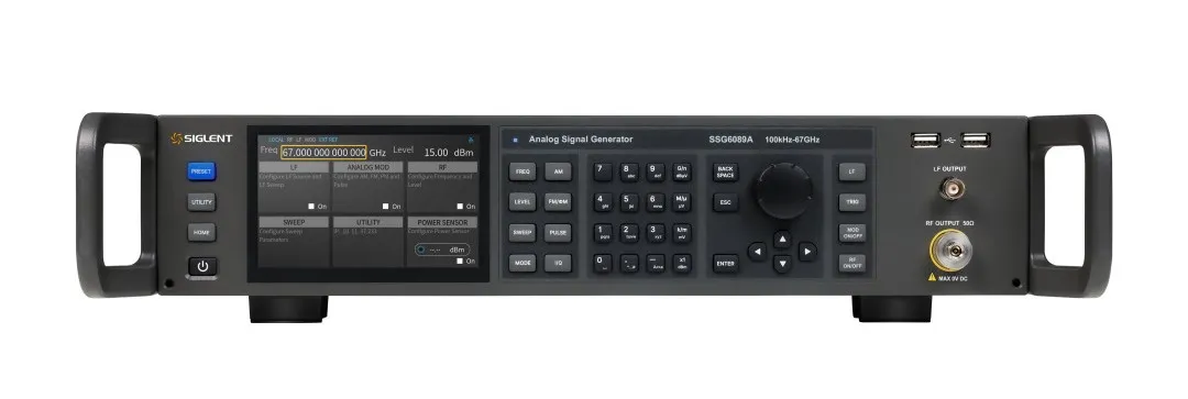 SSG6000A系列是鼎陽科技的高端射頻信號(hào)發(fā)生器,覆蓋頻率范圍從100 kHz至67 GHz,滿足廣泛的高頻測(cè)試需求。其最大輸出功率達(dá)+22 dBm,相位噪聲低至-148 dBc/Hz@1 GHz,offset=100kHz(選件設(shè)置下測(cè)試),確保信號(hào)的高純度。SSG6000A以其卓越的頻率分辨率(0.01 Hz)和豐富的通信接口(USB HOST、USB DEVICE、LAN等),成為專業(yè)射頻測(cè)試領(lǐng)域的優(yōu)選。