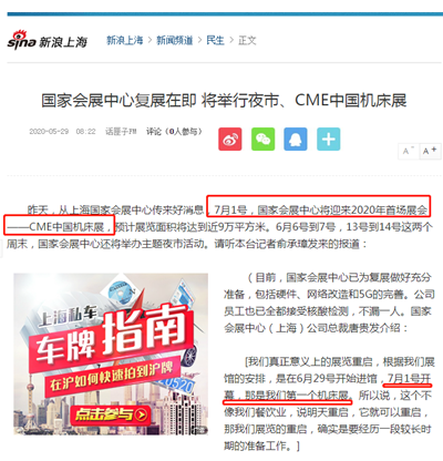 昨日上海國家會展中心官方傳遞好消息,7月1號,國家會展中心將迎來2020年首場展會:華機展-CME中國機床展!消息一出,瞬間刷爆網(wǎng)絡及個人朋友圈!