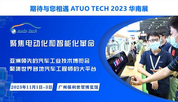 AUTO TECH 2023 中國(guó)國(guó)際汽車技術(shù)展覽會(huì)將于 2023年11月1-3日再次登陸廣州保利世貿(mào)博覽館,本次展會(huì)主要涵蓋:汽車電子、智能座艙、智能網(wǎng)聯(lián)、自動(dòng)駕駛、材料開發(fā)、EV/HV(功率半導(dǎo)體)、測(cè)試測(cè)量、零部件加工、模具等多個(gè)汽車工業(yè)的重要領(lǐng)域;作為華南重要的汽車科技創(chuàng)新展示平臺(tái),歡迎各位汽車工程師們蒞臨展會(huì)參觀指導(dǎo)!