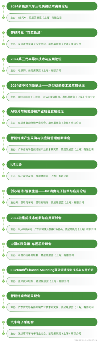 現(xiàn)場將舉辦一系列豐富多彩的論壇活動,涵蓋新能源汽車、智能汽車、車規(guī)芯片、AI芯片、三代半、消費電子、物聯(lián)網(wǎng)、藍牙技術(shù)等多個前沿領(lǐng)域。從智能制造到綠色低碳,從前沿技術(shù)到實際應(yīng)用,邀請電子行業(yè)、應(yīng)用領(lǐng)域以及科研院所的業(yè)界領(lǐng)袖、技術(shù)專家、科研學(xué)者,深入探討技術(shù)創(chuàng)新趨勢、市場現(xiàn)狀與未來發(fā)展方向。
