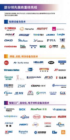 眾多海內(nèi)外展商云集:貼裝+焊接、點膠、噴涂+智能工廠、自動化、電子材料+測試測量+半導(dǎo)體封測+貼裝配套