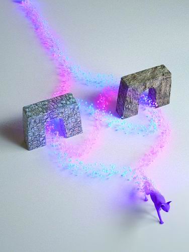量子不確定因果序的示意圖。藍(lán)色和紅色路線經(jīng)過(guò)兩個(gè)門的時(shí)序不同且處于量子疊加態(tài)。中國(guó)科學(xué)技術(shù)大學(xué)供圖