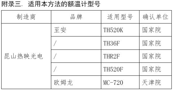 附錄三. 適用本方法的額溫計(jì)型號(hào)