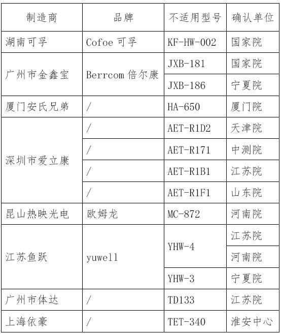 不在附錄三和附錄四的未經(jīng)適用性確認(rèn)的型號(hào),請(qǐng)?jiān)儐柺〖?jí)及以上計(jì)量院,必要時(shí)向其提供樣機(jī)進(jìn)行適用性確認(rèn)實(shí)驗(yàn)。