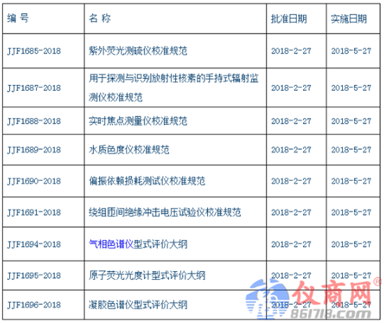 據(jù)悉,此次發(fā)布的一大批計量規(guī)范中,涉及紫外熒光測硫儀、水質(zhì)色度儀、測量儀等儀器儀表校準規(guī)范,以及氣相色譜、原子熒光光度計、凝膠色譜儀等儀器儀表型式評價大綱。部分儀器計量規(guī)范如下: