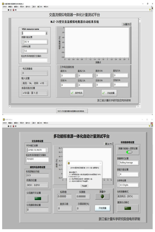 該平臺(tái)已完成多個(gè)一體化計(jì)量測(cè)試軟件平臺(tái)項(xiàng)目的開(kāi)發(fā)和聯(lián)機(jī)試運(yùn)行。其中,“多功能標(biāo)準(zhǔn)源一體化自動(dòng)計(jì)量測(cè)試平臺(tái)”在經(jīng)過(guò)16個(gè)版本的迭代升級(jí)和優(yōu)化調(diào)整后,呈現(xiàn)出良好的優(yōu)越性。其通過(guò)模塊化設(shè)計(jì),實(shí)現(xiàn)DCV、ACV、DCI、ACI、RES、DCW六大功能的自動(dòng)化計(jì)量,與業(yè)務(wù)系統(tǒng)無(wú)縫對(duì)接。同時(shí)還具有超強(qiáng)糾錯(cuò)功能、多次測(cè)量取平均值設(shè)置功能、原始數(shù)據(jù)管理功能、儀器設(shè)備清零功能、誤差圖表顯示功能、重要步驟流程提示功能、分流器接入模式下的自動(dòng)選擇與計(jì)算功能等。