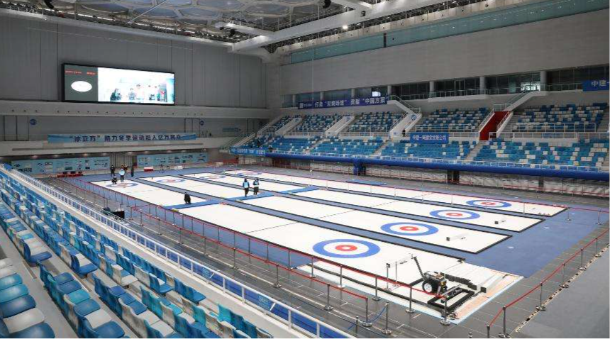 冰壺賽場(chǎng)相比短道速滑或者花樣滑冰賽場(chǎng)的冰面更加平滑,冰壺場(chǎng)地對(duì)溫度的要求更加嚴(yán)格,需要極其繁復(fù)制冰的工序。
