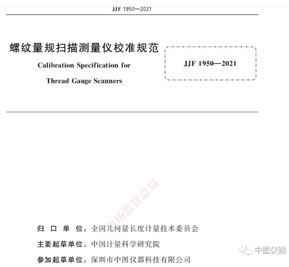 由中國(guó)計(jì)量科學(xué)研究院和深圳中圖儀器等單位起草的《JJF1950-2021螺紋量規(guī)掃描測(cè)量?jī)x校準(zhǔn)規(guī)范》發(fā)布,將于2022年6月28日正式實(shí)施。