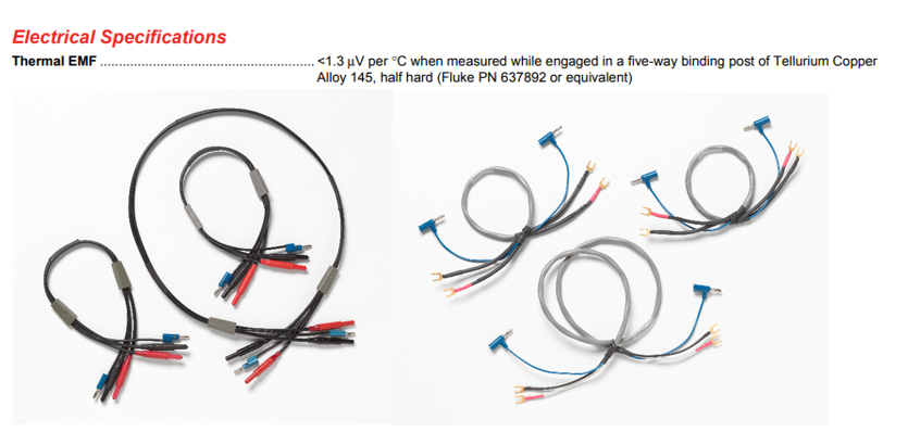 福祿克計(jì)量校準(zhǔn)部校準(zhǔn)器、標(biāo)準(zhǔn)器及標(biāo)準(zhǔn)數(shù)字多用表都標(biāo)配或選配各種測(cè)試專用連接線,方便用戶使用,提高測(cè)試穩(wěn)定性,減少測(cè)試導(dǎo)線引入的誤差。
