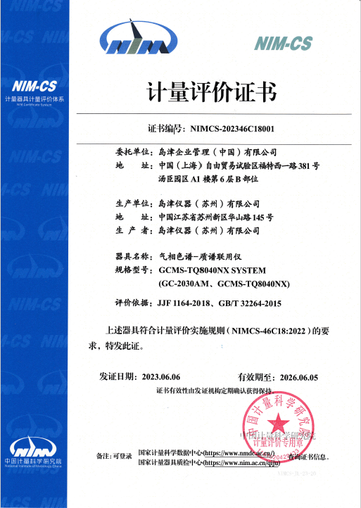 近日,島津儀器(蘇州)有限公司生產(chǎn)的氣質(zhì)聯(lián)用儀,通過中國計量科學(xué)研究院的計量測試評價,獲得國家最高計量技術(shù)機(jī)構(gòu)頒發(fā)“NIM-CS計量評價證書”。