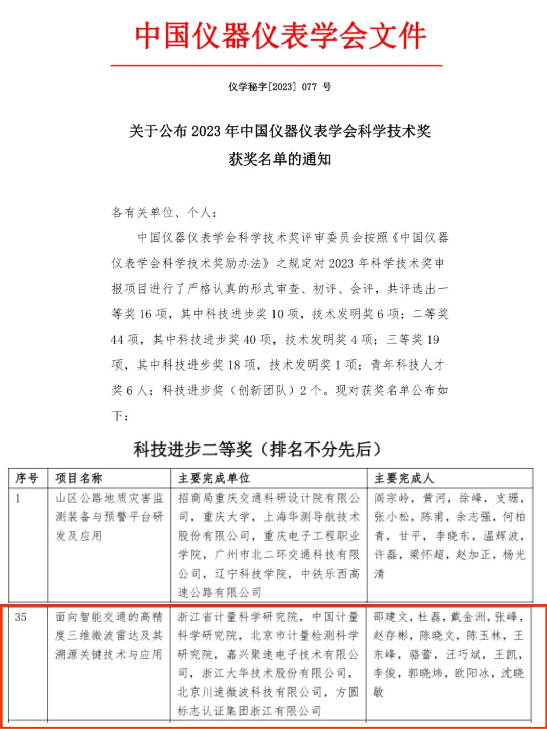 近日,中國(guó)儀器儀表學(xué)會(huì)科學(xué)技術(shù)獎(jiǎng)評(píng)審委員會(huì)公布了2023年科學(xué)技術(shù)獎(jiǎng)獲獎(jiǎng)名單。省計(jì)量院牽頭完成的《面向智能交通的高精度三維微波雷達(dá)及其溯源關(guān)鍵技術(shù)與應(yīng)用》,經(jīng)過(guò)激烈的角逐脫穎而出,獲科技進(jìn)步二等獎(jiǎng)。