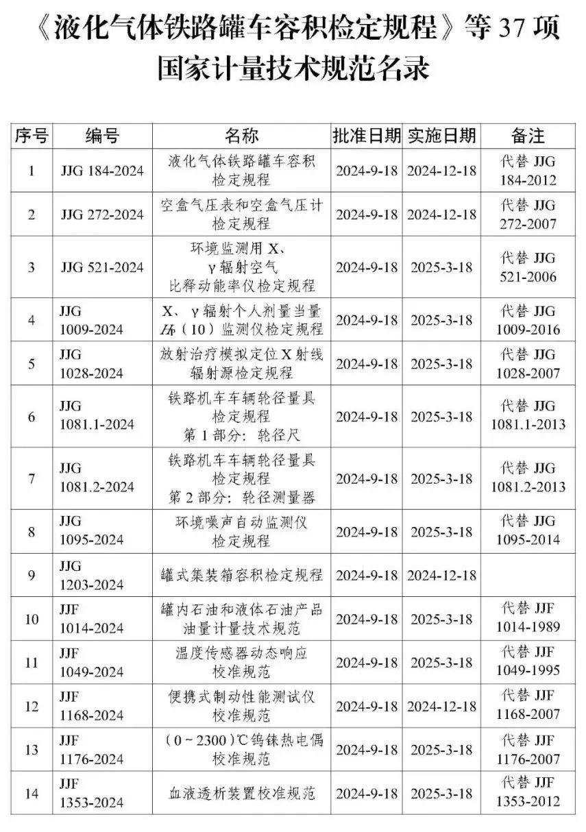 大家上午好!歡迎出席今天的市場監(jiān)管總局專題新聞發(fā)布會。近日,總局批準(zhǔn)發(fā)布了37項(xiàng)國家計(jì)量技術(shù)規(guī)范,覆蓋鐵路交通、醫(yī)療健康、環(huán)境噪聲監(jiān)測等多個(gè)領(lǐng)域。這些技術(shù)規(guī)范的出臺,將積極推動(dòng)相關(guān)領(lǐng)域科技發(fā)展和應(yīng)用轉(zhuǎn)化,也是相關(guān)部門單位落實(shí)黨的二十屆三中全會“健全因地制宜發(fā)展新質(zhì)生產(chǎn)力體制機(jī)制”改革任務(wù)的切實(shí)舉措。