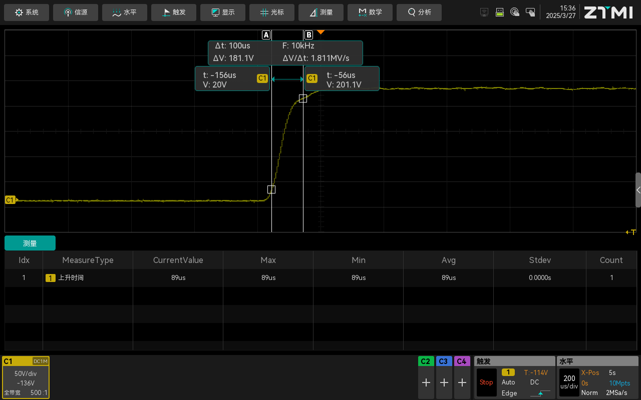 示波器主要用于記錄被測(cè)物電壓/電流瞬態(tài)響應(yīng)變化(推薦ZUS5000系列示波器,12bit高分辨率,5GSa/s采樣率);