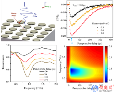 硅介質(zhì)超表面器件示意圖以及其對太赫茲波超快調(diào)控的實驗結(jié)果