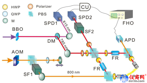 圖1.測量由單個(gè)光子引起的克爾效應(yīng)的試驗(yàn)裝置圖