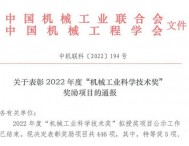 近日,中國機(jī)械工業(yè)聯(lián)合會發(fā)布《關(guān)于表彰2022年度“機(jī)械工業(yè)科學(xué)技術(shù)獎”獎勵項目的通報》,通報公布了2022年度“機(jī)械工業(yè)科學(xué)技術(shù)獎”授獎項目446項,其中,特等獎5項、一等獎41項、二等獎178項、三等獎222項。其中
