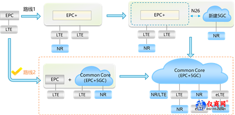 路線1:改造EPC支持5G無(wú)線的接入(5G架構(gòu)Option3)