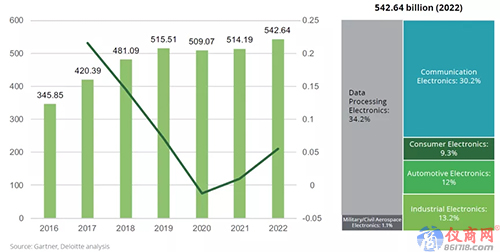 全球半導(dǎo)體行業(yè)進(jìn)入存量競爭的時(shí)代,而中國受益于5G、物聯(lián)網(wǎng)、新能源汽車產(chǎn)業(yè)的優(yōu)勢,半導(dǎo)體行業(yè)將繼續(xù)保持較高增速,2018年國內(nèi)半導(dǎo)體市場增速再度領(lǐng)先全球,增速達(dá)到20.5%,高于全球增速6.8個(gè)百分點(diǎn)。美國、歐洲、日本和其他環(huán)太平洋區(qū)域增速分別為16.4%、12.3%、9.3%和6.1%。2018年全球半導(dǎo)體市場規(guī)模增速亦是2010年以來最快的一年。根據(jù)前瞻產(chǎn)業(yè)研究院數(shù)據(jù),2022年中國半導(dǎo)體市場規(guī)模達(dá)到12925億人民幣,2018-2022年復(fù)合增速為18.83%,遠(yuǎn)高于全球平均水平。