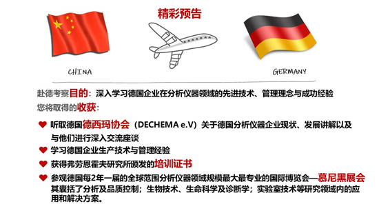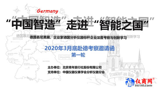 為了解德國(guó)分析儀器領(lǐng)域最新科研成果、設(shè)備和技術(shù),深入學(xué)習(xí)德國(guó)企業(yè)在分析儀器領(lǐng)域的管先進(jìn)技術(shù)理理念與成功經(jīng)驗(yàn),中國(guó)儀器儀表學(xué)會(huì)分析儀器分會(huì)定于2020年3月底4月初組織國(guó)內(nèi)分析儀器企業(yè)前往進(jìn)行為期8天的考察學(xué)習(xí)活動(dòng)。今日就向業(yè)內(nèi)人士發(fā)出邀請(qǐng)函: