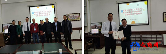 隨后,舉行了光儀學(xué)院兼職教授聘任儀式,覃開蓉教授為國(guó)務(wù)院津貼獲得者、國(guó)家科技進(jìn)步二等獎(jiǎng)獲得者楊理踐教授頒發(fā)兼職教授聘任證書,雙方約定在高精度的管道在線健康監(jiān)測(cè)方面在軍民領(lǐng)域展開深度合作,并在研究方向上做了討論。儀式結(jié)束后,覃開蓉教授一行參觀了遼寧省先進(jìn)在線檢測(cè)技術(shù)重點(diǎn)實(shí)驗(yàn)室和測(cè)控專業(yè)實(shí)驗(yàn)室。
