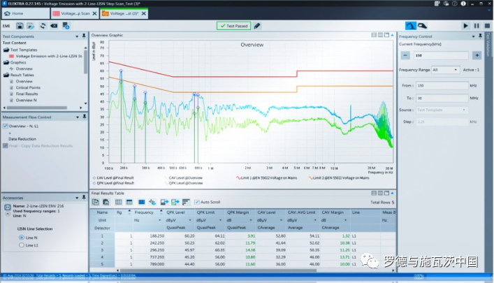 R&S ELEKTRA EMC軟件不僅是5G測(cè)試解決方案的理想選擇,而且通常可以在現(xiàn)代化的用戶操作指導(dǎo)下,部署在高效的自動(dòng)化測(cè)試系統(tǒng)中。該軟件有助于在開發(fā)過程中進(jìn)行交互式測(cè)量,并以可定義的自動(dòng)化程度對(duì)電磁干擾(EMI)進(jìn)行測(cè)量,滿足預(yù)認(rèn)證和認(rèn)證測(cè)試的需求。它適合根據(jù)當(dāng)前的商業(yè)和軍事標(biāo)準(zhǔn)以及汽車行業(yè)的EMC標(biāo)準(zhǔn)所進(jìn)行的認(rèn)證測(cè)量。它同時(shí)也可用于輻射和傳導(dǎo)電磁敏感度(EMS)的測(cè)試系統(tǒng)。該軟件可以自動(dòng)生成各種測(cè)試計(jì)劃、進(jìn)行校準(zhǔn)和結(jié)果評(píng)估。在每種情況下,發(fā)生器都可根據(jù)IEC 61000-4-3/-4-6提供精確的信號(hào)電平。R&S ELEKTRA支持羅德與施瓦茨當(dāng)前所有的EMI測(cè)試接收機(jī)和相關(guān)的頻譜分析儀。
