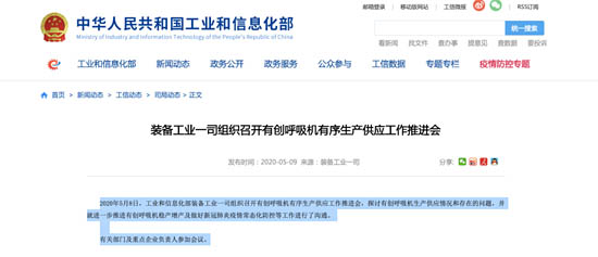 5月8日,工信部召開(kāi)推進(jìn)呼吸機(jī)有序生產(chǎn)供應(yīng)視頻會(huì)議,會(huì)議強(qiáng)調(diào)呼吸機(jī)行業(yè)要強(qiáng)化呼吸機(jī)產(chǎn)業(yè)鏈協(xié)同與質(zhì)量安全管控,積極參與國(guó)際合作,為全球疫情防控做出巨大貢獻(xiàn)。