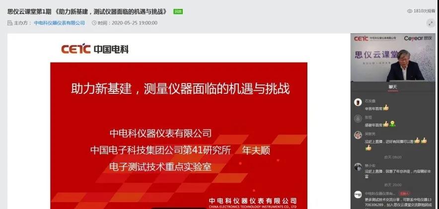 2020年5月25日晚Ceyear思儀云課堂正式上線,首期中國電子科技集團公司首席科學家年夫順在線開講《助力新基建,測試儀器面臨的機遇與挑戰(zhàn)》。