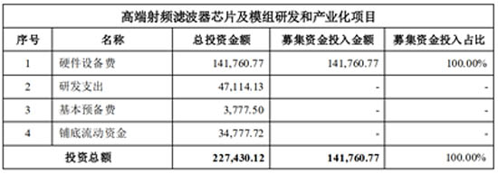 其中,高端射頻濾波器芯片及模組研發(fā)和產(chǎn)業(yè)化項(xiàng)目情況如下:
