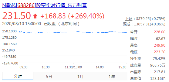今日,MEMS傳感器芯片龍頭企業(yè):敏芯股份正式在上海證券交易所科創(chuàng)板上市,公司證券代碼為688286,發(fā)行價(jià)格62.67元/股,發(fā)行市盈率為65.46倍。該公司股價(jià)今日盤中一度大漲290%,收盤漲幅為269.4%,報(bào)231.5元,總市值達(dá)123.16億元。