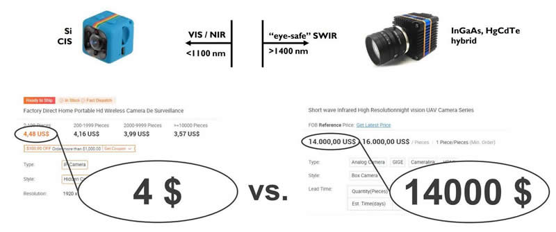 硅基可見光/近紅外攝像頭 vs. 基于III-V的短波紅外攝像頭