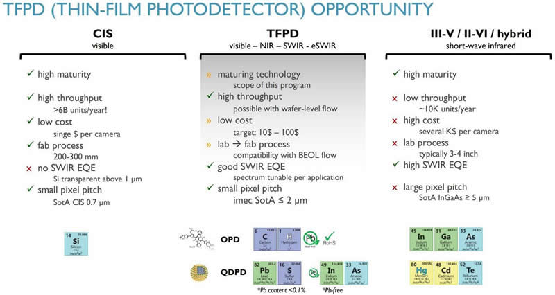 薄膜光電探測器機(jī)遇(CIS vs. TFPD vs. III-V / II-VI / hybrid)