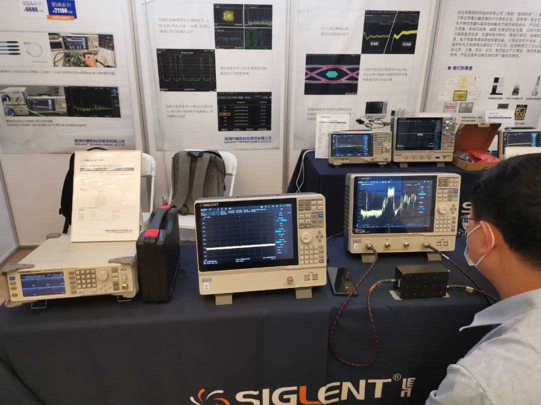 鼎陽科技于2021年4月發(fā)布的SSG5000A是一款兼具技術(shù)優(yōu)勢和高性價比的微波信號發(fā)生器,最大輸出頻率為20GHz,最大輸出功率可達20dBm,標配了具有高穩(wěn)定度參考的OCXO高精度參考源。它是針對無線通信、航空航天等行業(yè)推出的高端射頻信號發(fā)生器,極致性能不僅可以實現(xiàn)各種復(fù)雜信號的模擬生成,還可以根據(jù)實際需要編輯產(chǎn)生用戶特定的信號樣式以適應(yīng)更多場合需求。展會現(xiàn)場吸引了不少參會的科研團隊和企業(yè)參展人員目光,紛紛前來試用體驗。