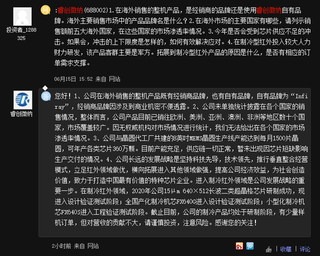 同時(shí),投資者還提及“在制冷型紅外投入較大人力財(cái)力研發(fā),該產(chǎn)品客群主要是軍方。拓展到制冷型紅外產(chǎn)品的原因是什么,是否有相應(yīng)的訂單需求支撐。”。