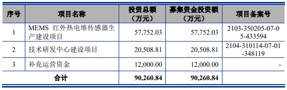 招股書顯示,燁映微此次IPO擬募資9.03億元,投建于MEMS紅外熱電堆傳感器生產(chǎn)建設(shè)項(xiàng)目、技術(shù)研發(fā)中心建設(shè)項(xiàng)目以及補(bǔ)充運(yùn)營資金。