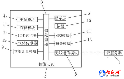 本發(fā)明的有益效果是:能夠定期自動將電表數(shù)據(jù)上報到云服務器,便于供電公司管理,無需人工抄表,提高了工作效率,避免了漏抄、誤抄情況的出現(xiàn)。