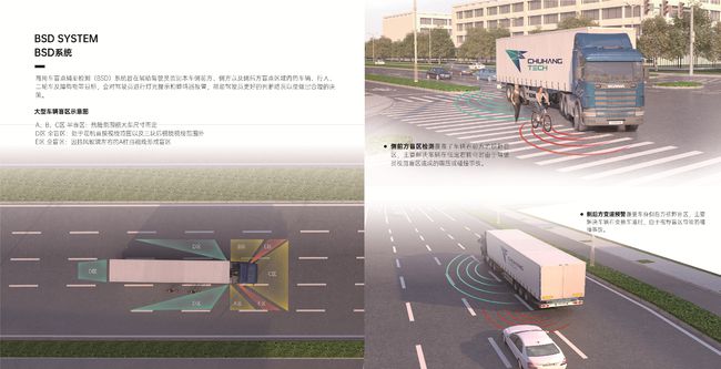 當(dāng)大卡車、大客車右轉(zhuǎn)的時(shí)候,會(huì)出現(xiàn)特定區(qū)域中的盲區(qū),會(huì)影響司機(jī)對(duì)側(cè)前方、側(cè)方以及側(cè)后方區(qū)域內(nèi)的車輛、行人、二輪車及障礙物等判斷。而該系統(tǒng)會(huì)對(duì)駕駛員及時(shí)進(jìn)行燈光提示和蜂鳴器報(bào)警,從而幫助駕駛員更好地判斷路況,做出合理決策,避免事故的發(fā)生。