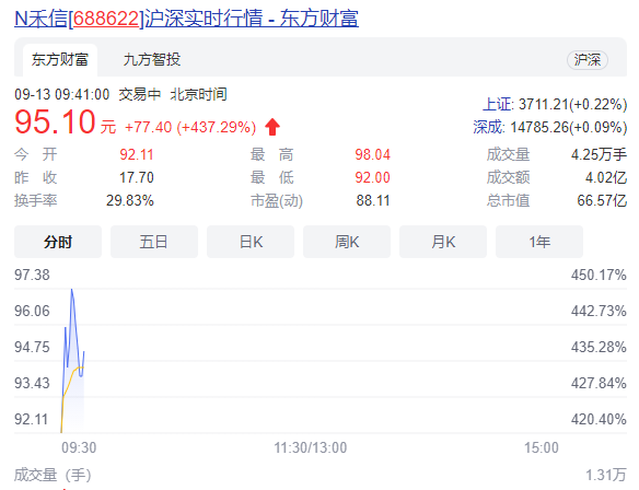 9月13日,禾信儀器終于正式登陸科創(chuàng)板了。公司證券代碼為688622,發(fā)行價(jià)17.7元/股,今日開(kāi)盤(pán)價(jià)92.11元/股,開(kāi)盤(pán)即刻上漲,較發(fā)行價(jià),股價(jià)已經(jīng)翻了四倍。