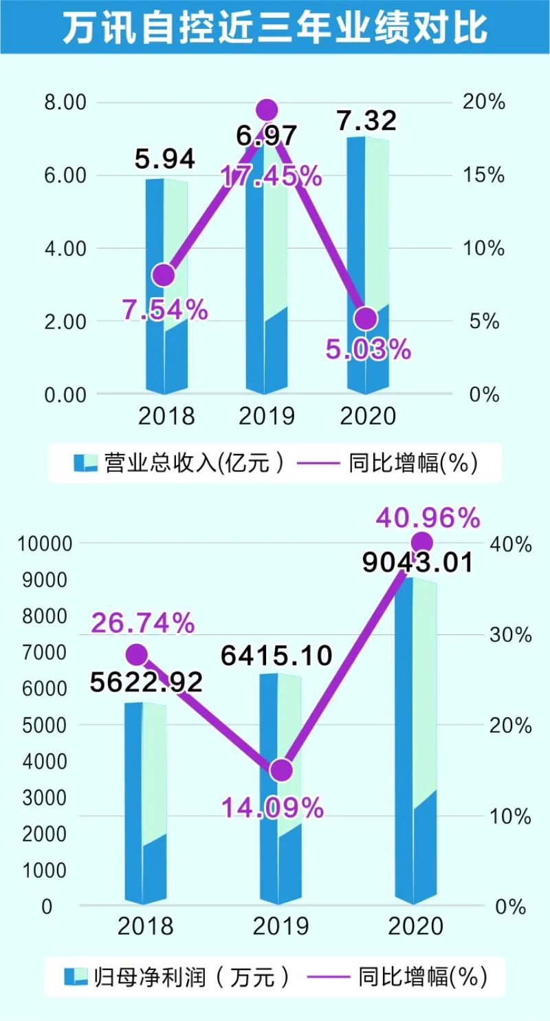 目前,萬訊自控是國內(nèi)同行業(yè)產(chǎn)品最多、型號最齊全的企業(yè)之一。公司產(chǎn)品系列豐富,包括閥門定位器、電動執(zhí)行器、流量計、氣體探測器、氣體報警控制器、電磁閥、信號調(diào)理器、控制閥、壓力和溫度儀表、物位儀表等,產(chǎn)品型號多達幾百種。2010年上市以來,萬訊自控營業(yè)收入連續(xù)10年實現(xiàn)同比增長,從2010年的1.6億元增長至2020年的7.3億元。凈利潤螺旋式上升,從2010年的2500萬元增長至2020年超過9000萬元。今年上半年,萬訊自控持續(xù)保持增長態(tài)勢,實現(xiàn)營收和凈利雙增長:營業(yè)總收入3.7億元,同比增長30.68%;凈利潤3587萬元,同比增長76%。