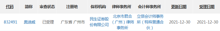 12月30日,廣東奧迪威傳感科技股份有限公司(以下簡(jiǎn)稱:奧迪威)北交所上市申報(bào)材料獲北京證券交易所受理,保薦機(jī)構(gòu)為民生證券,或成為“北交所智能傳感器第一股”。