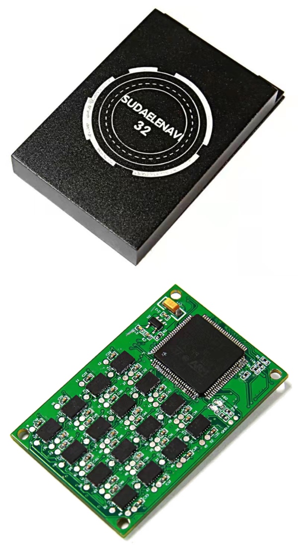“神秘”小黑盒內(nèi)的組件可以測量載體的運動加速度和旋轉(zhuǎn)角速度。其中,運動加速度由加速度計獲取,旋轉(zhuǎn)角速度由陀螺儀采集。里面也別有洞天,PCB板上分布著32個小芯片和1塊大芯片,分別是消費級微慣性傳感器和主控芯片STM32。就是這樣32個精度低、價格便宜的消費級慣性傳感器,通過該團隊對其基于并行數(shù)據(jù)采集結(jié)構(gòu)的陣列化電路設(shè)計,竟搖身一變,精度相對提升近6倍,可媲美工業(yè)級的慣性測量單元。
