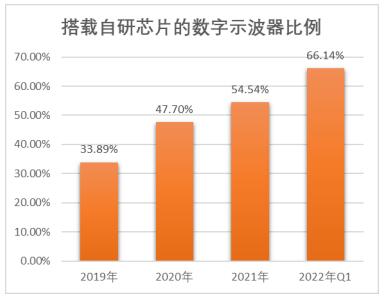 公司搭載自研芯片的數(shù)字示波器比例'(金額)逐年提升(如下圖),標志著該策略在中高端產(chǎn)品已經(jīng)收獲成功。伴隨著示波器自研芯片戰(zhàn)略“升級”和“沉降”的雙引擎驅(qū)動,公司預(yù)計該比例在2024年將達到90%左右。