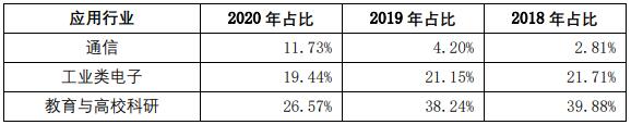 答:依據(jù)公司上市文件公開披露,2018-2020年度下游產(chǎn)品應(yīng)用行業(yè)占比大于10%以上的,歸納如下。下述數(shù)據(jù)是2020年統(tǒng)計的,我們認為通信和工業(yè)類電子的比例在2021年會更高。
