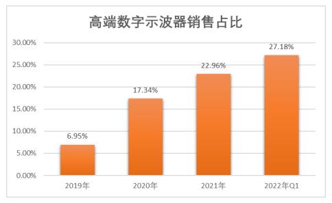 答:公司2022年Q1數(shù)字示波器中高端產(chǎn)品的銷售占比‘達到27.18%,且占比逐年提升,趨勢良好。公司預(yù)計高端數(shù)字示波器將持續(xù)拉動公司營收、毛利率和凈利潤的成長。公司計劃未來幾年將高端產(chǎn)品占比提升至40%以上。
