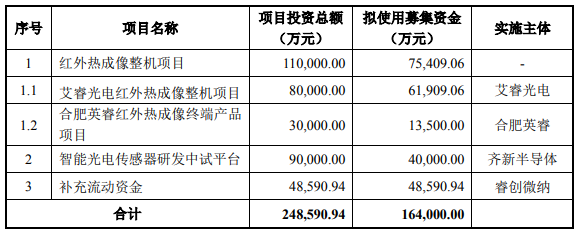 今年2月13日,睿創(chuàng)微納發(fā)布公告稱,公司擬向不特定對(duì)象發(fā)行可轉(zhuǎn)債,募資不超16.4億元,扣除發(fā)行費(fèi)用后,用于紅外熱成像整機(jī)項(xiàng)目、智能光電傳感器研發(fā)中試平臺(tái)及補(bǔ)充流動(dòng)資金。