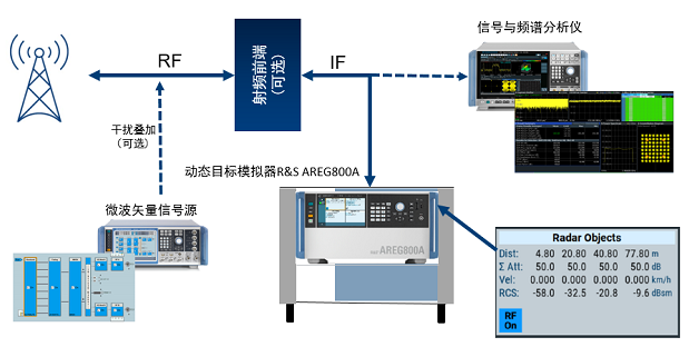 目前,業(yè)界感知能力的技術(shù)驗(yàn)證和測(cè)試大多基于實(shí)際物體,測(cè)試場(chǎng)景有限,模擬目標(biāo)的數(shù)量單一并且設(shè)置不靈活。而R&S公司最新的動(dòng)態(tài)目標(biāo)模擬器AREG800A可以生成多個(gè)具有不同距離、大小、徑向速度和角方向的動(dòng)態(tài)目標(biāo),并且可以通過(guò)增加前端數(shù)以實(shí)現(xiàn)更多目標(biāo)的模擬。搭配不同的變頻器模塊,可以實(shí)現(xiàn)基于Sub-6G、毫米波甚至太赫茲頻段的通感一體化測(cè)試。