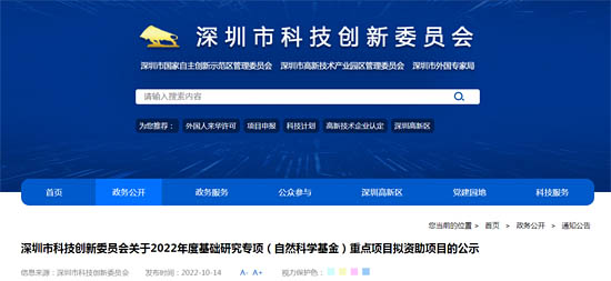 根據(jù)《深圳市科技研發(fā)資金管理辦法》《深圳市科技計(jì)劃項(xiàng)目管理辦法》《深圳市基礎(chǔ)研究項(xiàng)目管理辦法》等有關(guān)規(guī)定,近日深圳市科技創(chuàng)新委員會(huì)擬對(duì)2022年度基礎(chǔ)研究專項(xiàng)(自然科學(xué)基金)重點(diǎn)項(xiàng)目306個(gè)項(xiàng)目、面上項(xiàng)目1044個(gè)項(xiàng)目進(jìn)行資助,現(xiàn)予公示,向社會(huì)征求意見(jiàn)。